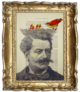 I am also crazy about the Etsy shop CocoDeParis. It is full of fun images like Thinking About Birds, above. Yeah, I know the whole printing/painting-on-a-bookpage is overplayed lately....but it is a look I love, and these guys do it so well.